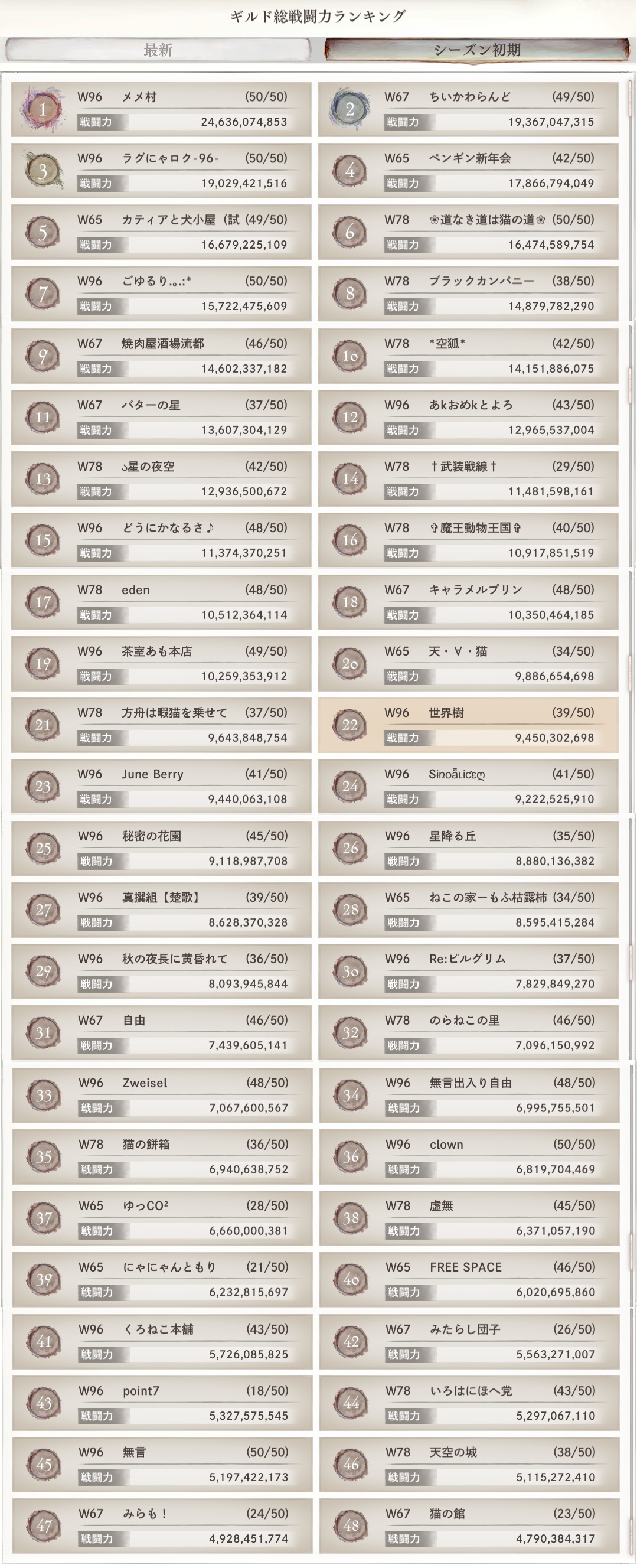 ゲスト セイラカ 指揮官 まいにち ■ リ・リェンチェ ■ のん サブマスター (初代マスター)■ れざちゃ ニンニク入れますか? ■ 虎杖 ■ いとみん ■ たごさく 世界樹の現マスター しえり ■ ポポ ■ [てい] ゲスト アガサ ■ ふぐしゃん ■ サハラヨーク ■ 糖質中毒 ■ ぺちゃ ■ サブリデイ ■ トリマル ■ ちょんぷり ■ ジャマイカ人 ■ shinzo ■ るな ■ 椛乃 指揮官 ■ゲスト にんにく増し増し! ■ アオハラ ■ 斎賀 玲 ■ シーラカンス ■ A24Y ■ ミスルトゥ ■ * Uちゃん * ■ みじゅ ■ しぃ ■ 龍宮院 京極 ■ 春夏冬アロヱ ■ 一般人デビルサマナー ■ 幸兎 ■ #KLTplspls