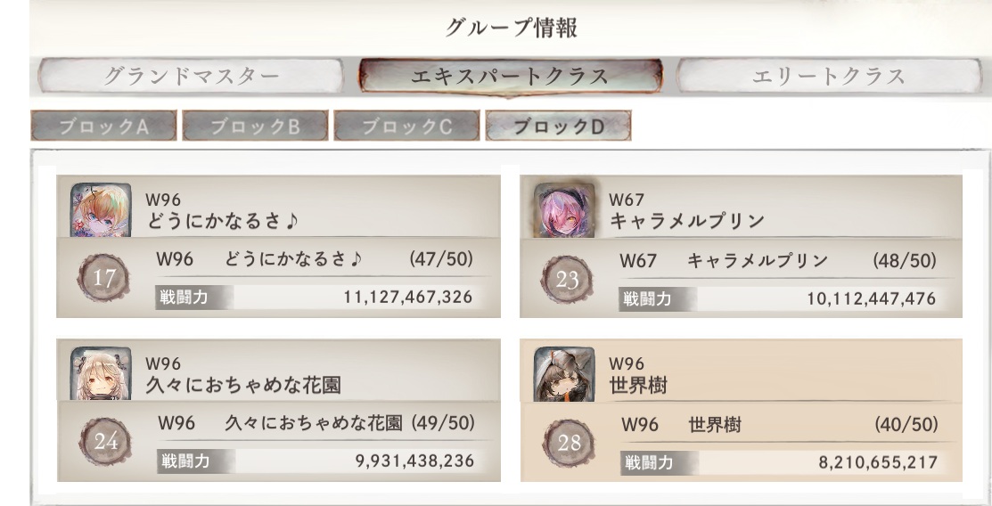 総合戦闘力17位~32位で構成される「エキスパートクラス」に振り分けられた。
